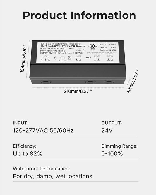 200W LED Power Driver for Track Lighting, 24V TRIAC/0-10V Dimmable Transformer