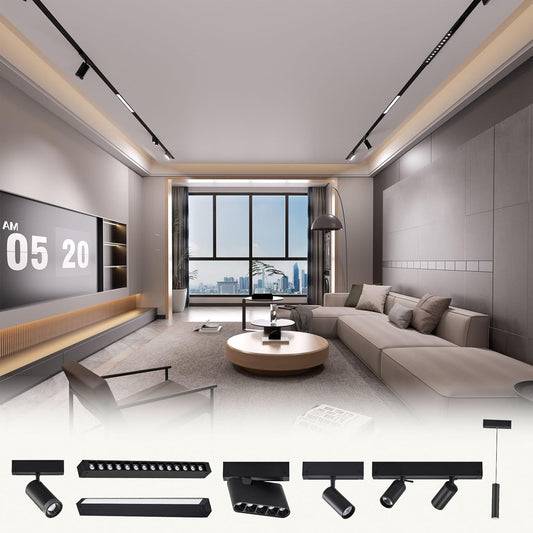 Magnetic Track Lighting Rail Kit, 4-Wire Recessed Aluminum Rail-3.3FT
