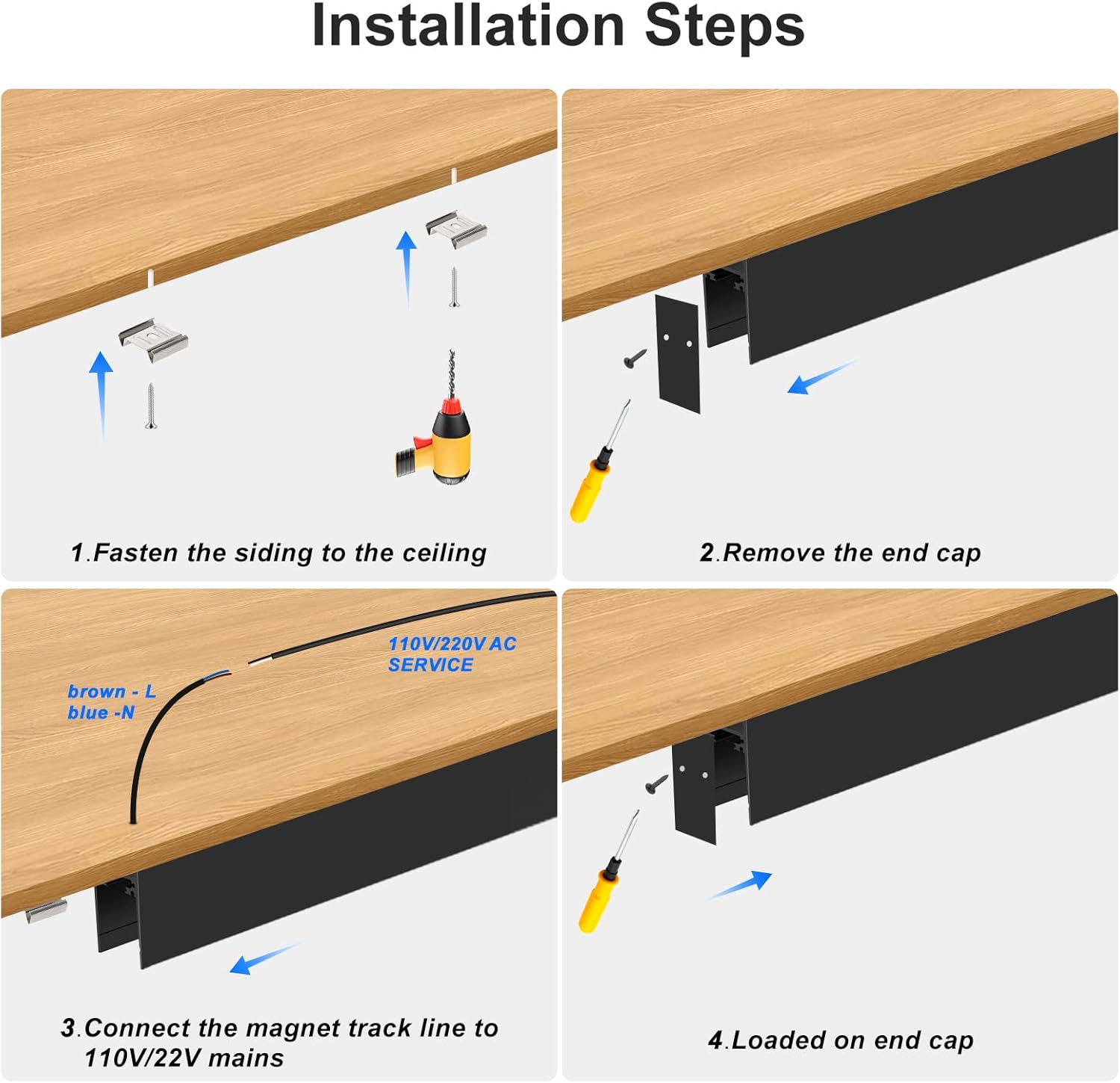 1M 4-Wire Ceiling Mounted Magnetic Track Lighting Rail